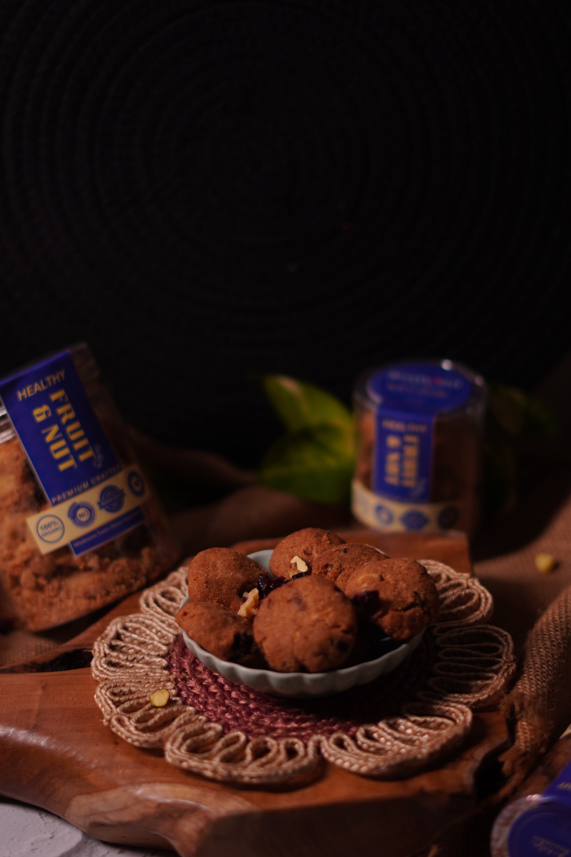 A perfect blend of nutrition and indulgence. These handcrafted biscuits are loaded with juicy dried fruits and crunchy nuts, bringing together rich textures and naturally sweet flavors in every bite. Made with wholesome ingredients and baked to golden perfection, they’re high in fibre, eggless, and free from preservatives. Whether paired with tea or enjoyed as a mid-day pick-me-up, these biscuits are a deliciously healthy treat you’ll keep coming back to.